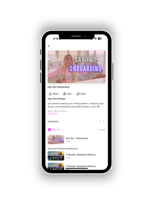 Upon joining, you'll gain access to the "YOUR FIRST 9 DAYS" Onboarding Series to get started breaking your limiting patterns, releasing your blocks, and manifesting big breakthroughs in your life!