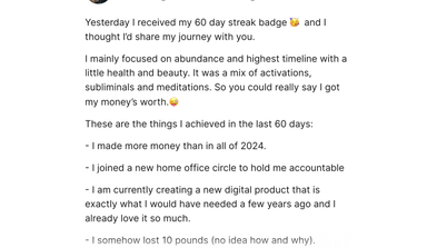 When you join Highest Timeline™, you’ll be instantly directed into our user-friendly member portal, where all of your meditations, activations, subliminals, challenges, workshops, and community live in one easy-to-navigate space. You’ll begin with our guided 9-Day Onboarding Series, which walks you step by step through this work so you can experience breakthroughs right away.